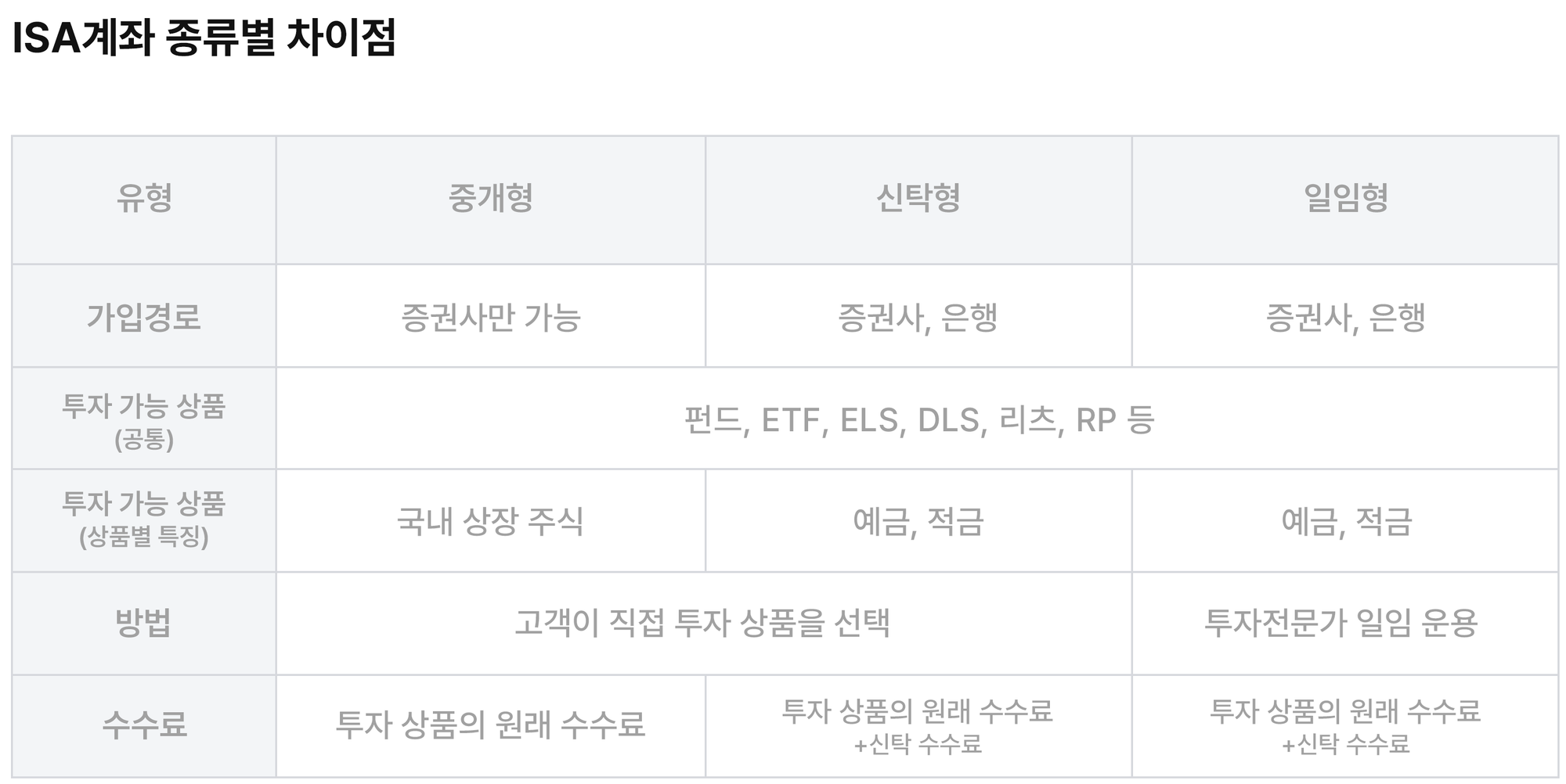 세금 혜택을 받으면서 투자할 수 있는 방법이 있어요. 바로 ISA계좌인데요. 혜택이 좋다는 얘기를 들어보셨을 거예요. 하지만 종류가 많아 ISA계좌를 어려워하시는 분들이 많은데요. 그래서 이 글을 준비했습니다. 2분만 투자해 주세요.